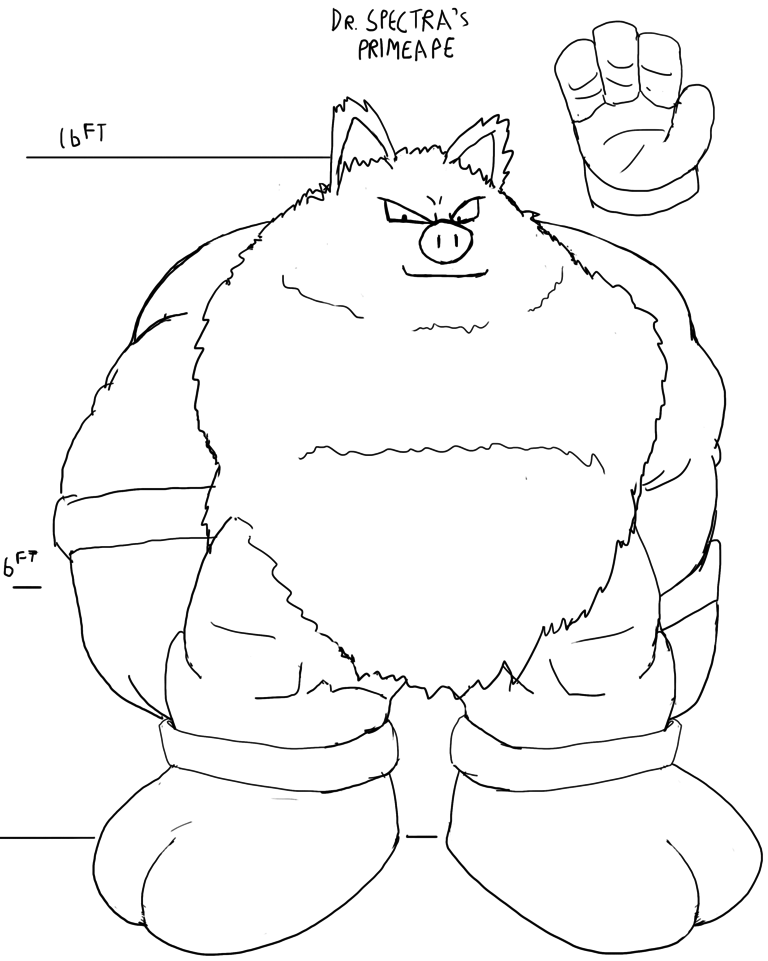 K.P. is a Naughty-Natured Hitmonlee who enjoys using the extendable nature of his limbs to play jokes on others or show how tall he is. It wasn't until he took part in Dr. Spectra's experiments that K.P. was subject to 'MAXIMIZE', turning him into a 16ft tall giant Pokémon. His arms now possessed the strength and springiness his legs possessed, able to stretch them to incredible lengths while maintaining a good degree of leverage and impact.
